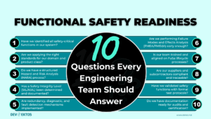 Meeting functional safety requirements is an engineering discipline that demands a 360-degree view of risk, architecture, process, and verification. Answering these 10 questions gives your team a real readiness roadmap. Whether you are building an electric vehicle platform or a life-saving medical device, functional safety readiness sets the pace for how quickly and safely you can deliver.